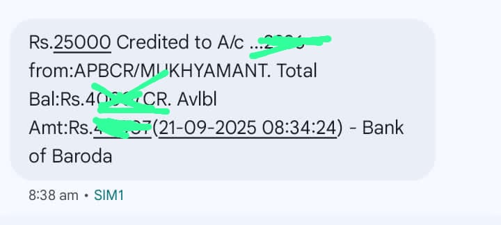 राशि ट्रांसफर: सटीक आंकड़ा नहीं बताया गया, परन्तु भुगतान हुआ है।